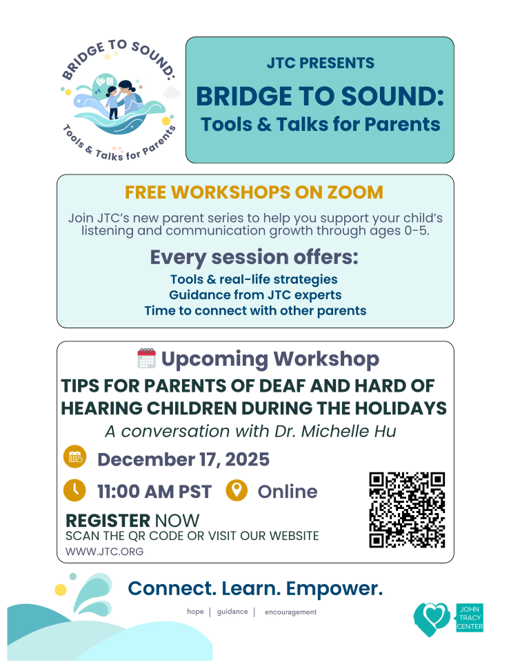 In 1943 Louise Tracy pioneered a worldwide movement, offering one of the nation's very first spoken-language education and support programs for infants and young children with hearing loss. By becoming a supporter of JTC, you're helping children who are deaf and hard of hearing develop speech, language and listening skills, and equipping parents with the knowledge, support and training necessary to help their children achieve their full potential.