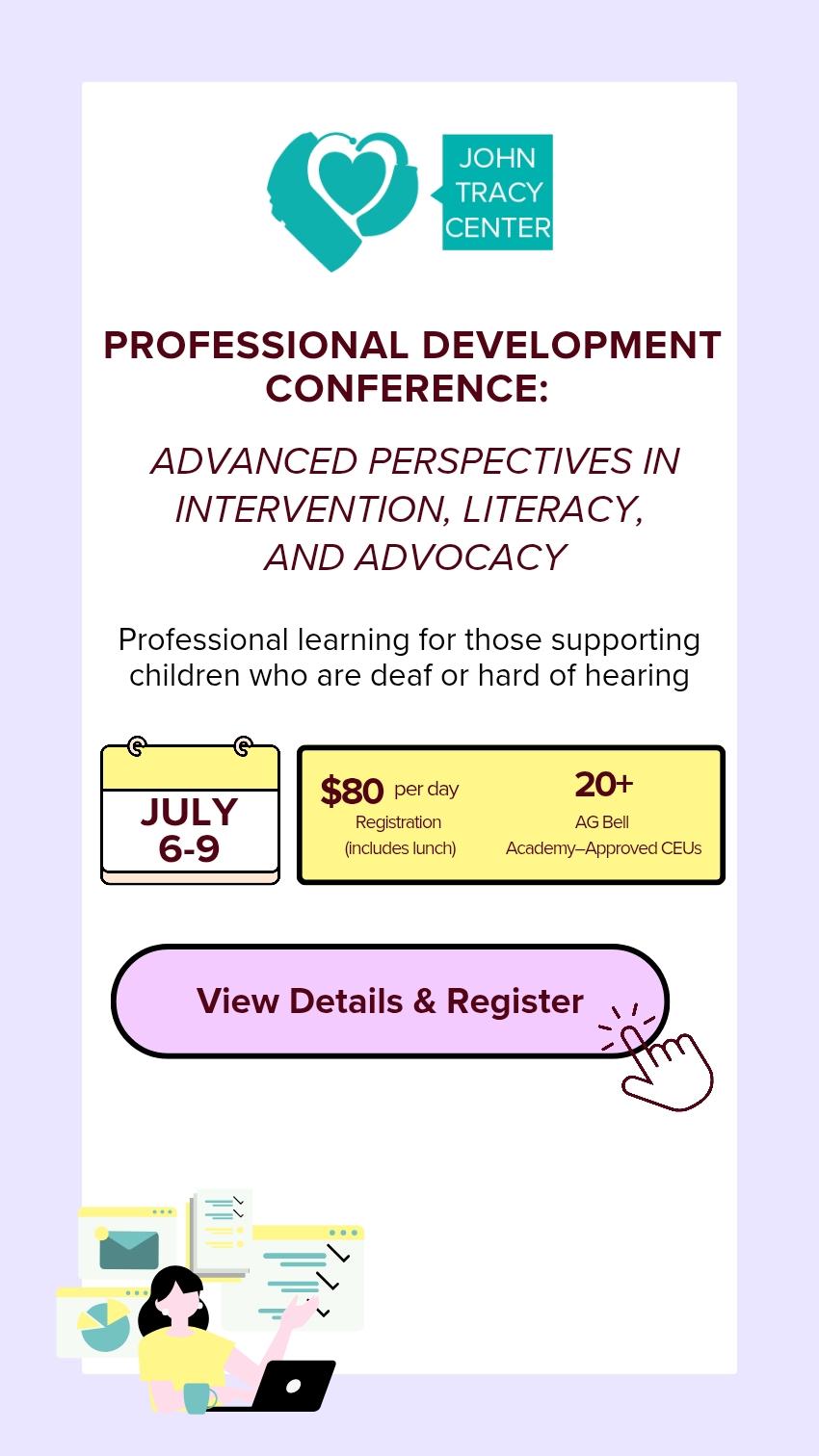 An alum of our Parent-Infant program, Renee Polanco Lucero, Ph.D., LSLS Cert., AVEd, has a hearing loss since birth and is bimodal, using a hearing aid in her left ear and a cochlear implant in her right ear. Renee earned her master’s degree in JTC’s graduate program and her Ph.D. in special Education, as well…
